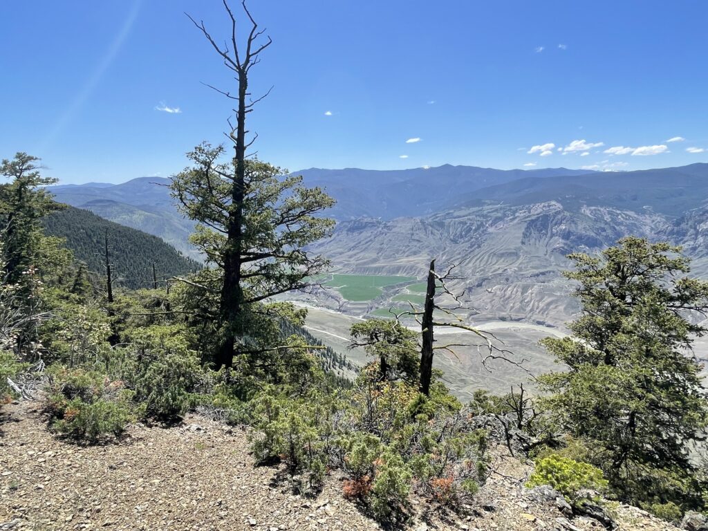Haller Rec Site is a pretty cool camp spot. It’s west of Clinton on the Jesmond Road (51.17141655260646, -121.95455740354774). The red pin is the camp. You get there by leaving Clinton and going down the Kelly Lake Road, then the Jesmond Road to just past the Circle H Mountain Ranch. Kostering Creek runs through the site, there’s a cool horse corral and lots of stuff to do around there. We ride from the site each day.